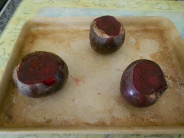 Layer the beetroot slices on top of the dish  then I mixed low fat yoghurt with a dollop of mayonnaise and dotted it over the vegetables. (Cheese sauce is a good substitute)