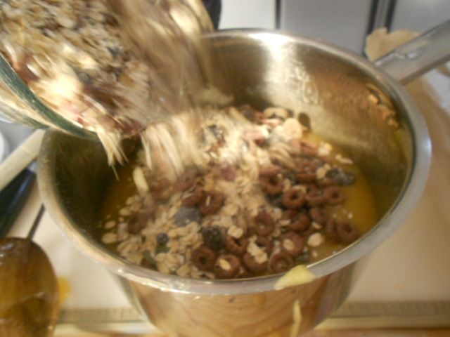 Mix the oats, fruit, seeds and cereal together in a bowl