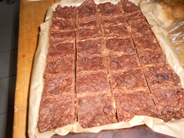 Crush the biscuits into smallish pieces but not crumbs and stir them into the butter mix, followed by the sultanas.