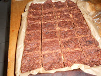 Spread out onto a piece of greaseproof paper into a large dish. I only use the paper to make it easier to lift out and cut into portions. Score the portion sizes before it goes into the fridge and becomes too solid.