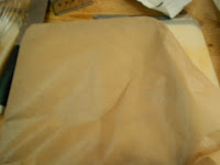 Turn the mixture into the tin and smooth the top out. Sprinkle with more sugar before covering lightly with greaseproof paper.