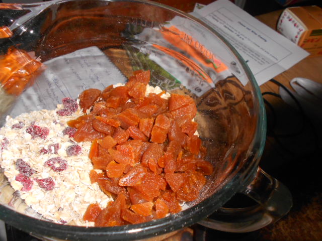 Add the dry mix to the butter and mix well so that all the oats and fruit are well coated.