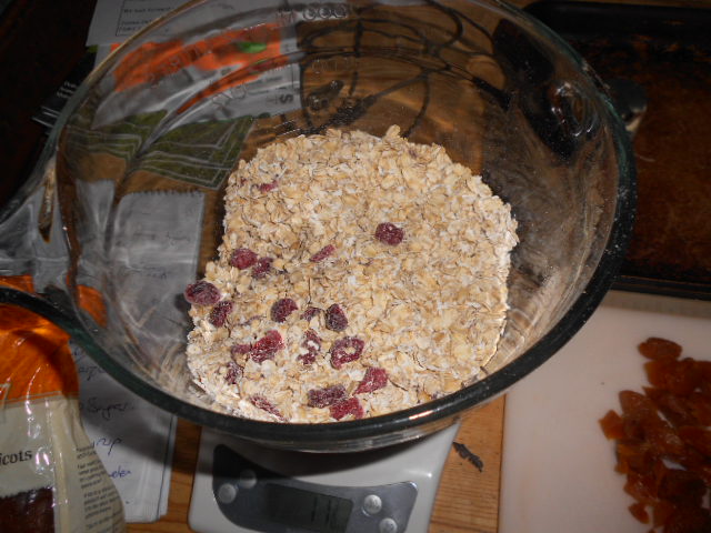 1lb Oats mixture with nuts and sultanas (I used a mix of 70% jumbo and porridge oats; with dried cranberries and apricots rather than nuts)