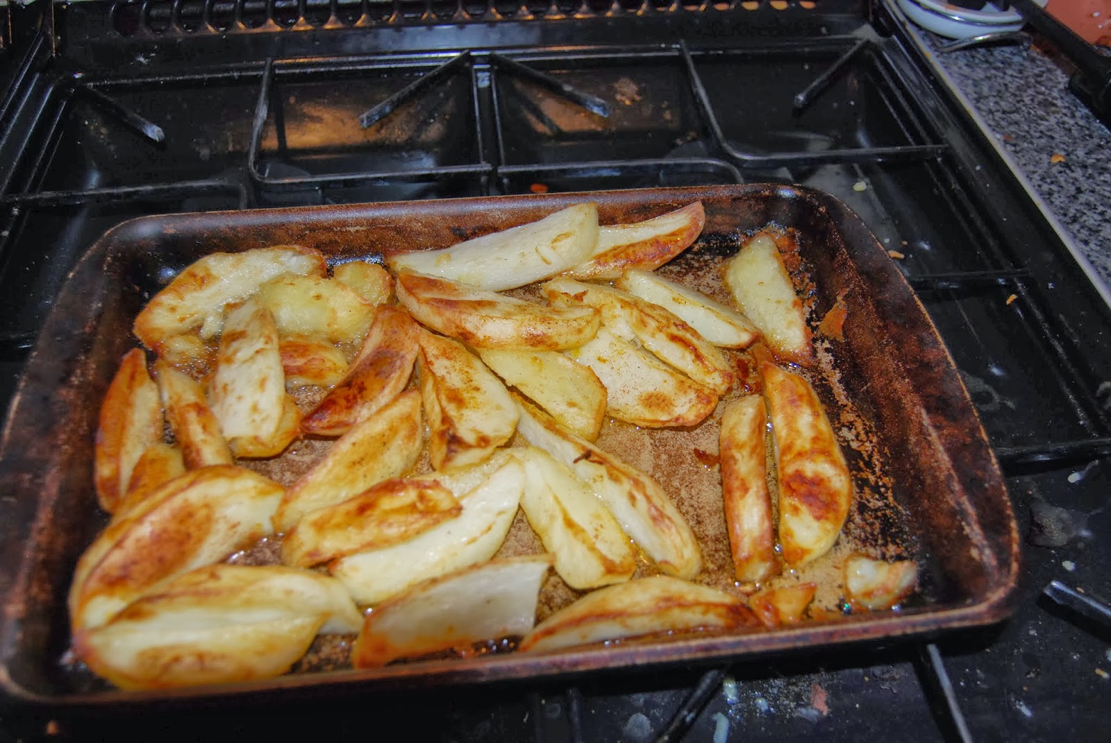 When the potatoes are soft but still in shape drain them and add them to the melted lard sprinkle with paprika and put in the oven for about an hour.
