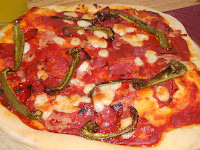 Green peppars (roasted in olive oil and brown sugar) / mozzarella / slithers of ham / jalapeno peppers on the other half
