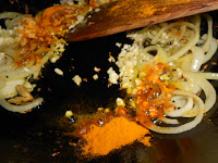 No more than 2 minutes then add the onion, again stirring constantly, allow this to soften and take on the flavours of the seeds.