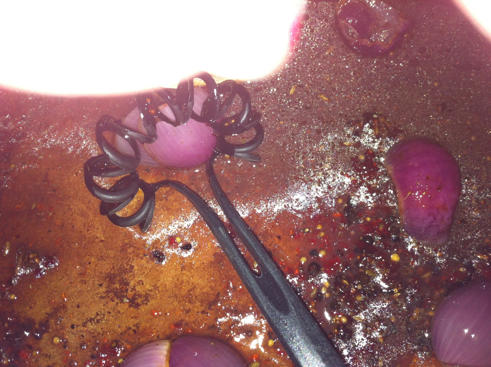 Serve with delicious Yorkshire Puddings, Roast potatoes and a selection of veg. I confess to hide all the seeds and onions I strained the gravy before taking it to the table, but some tastes might enjoy the bits still in the gravy