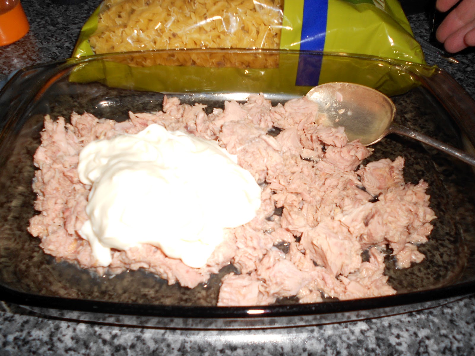 Meanwhile mix the tuna with the mayonnaise so that it is really well coated.